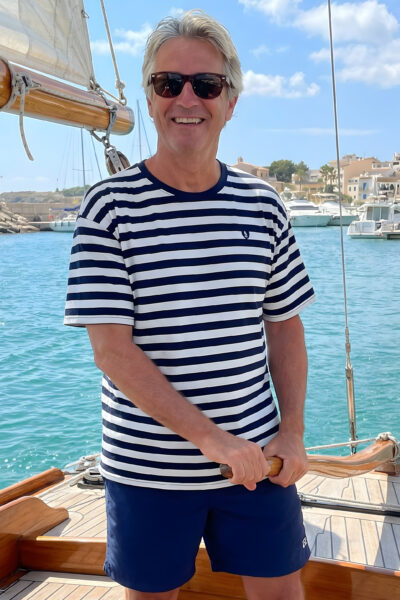 Men’s BLU T-shirt with white and navy blue stripes – a classic nautical style (1631)