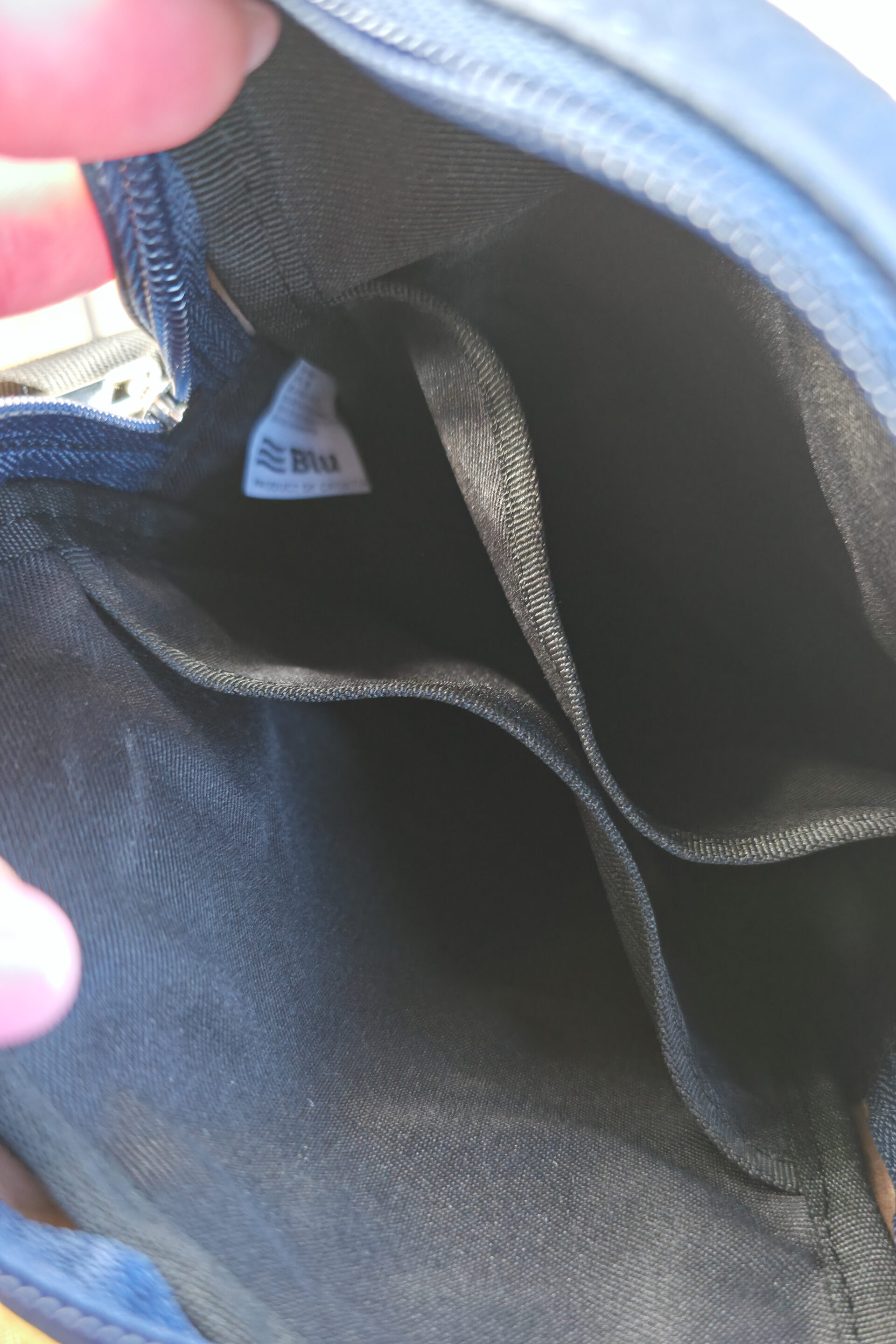 The bag has one large zippered compartment and two spacious open pockets inside — perfect for your phone, documents or other essential items.
