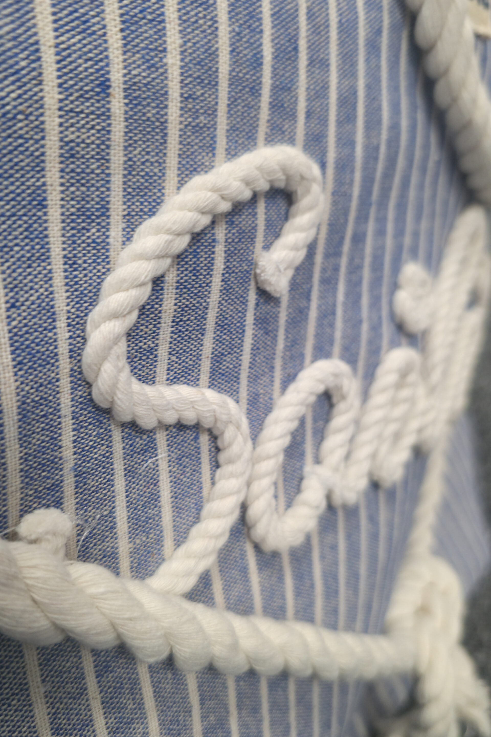 Na przodzie torby znajduje się ozdobny napis SAILING, wykonany ze sznurka i starannie przymocowany, dzięki czemu dodaje jej charakteru i niepowtarzalnego stylu. Rączki z miękkiej liny są przyjemne w dotyku i wygodne — możesz nosić torbę zarówno w dłoni, jak i na ramieniu.